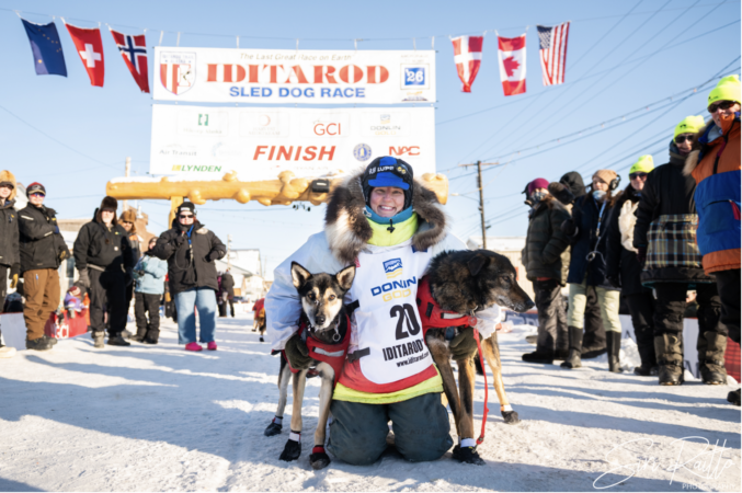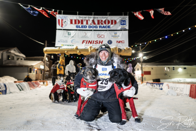 Wind was a force throughout Iditarod 54. While you can’t take a picture of the wind, the force of the wind can be seen through the flags suspended over the burled arch. Thanks to Siri Raitto photo’s, we can see the wind velocity on Front Street in Nome from Jessie Holmes to Richie Beattie.