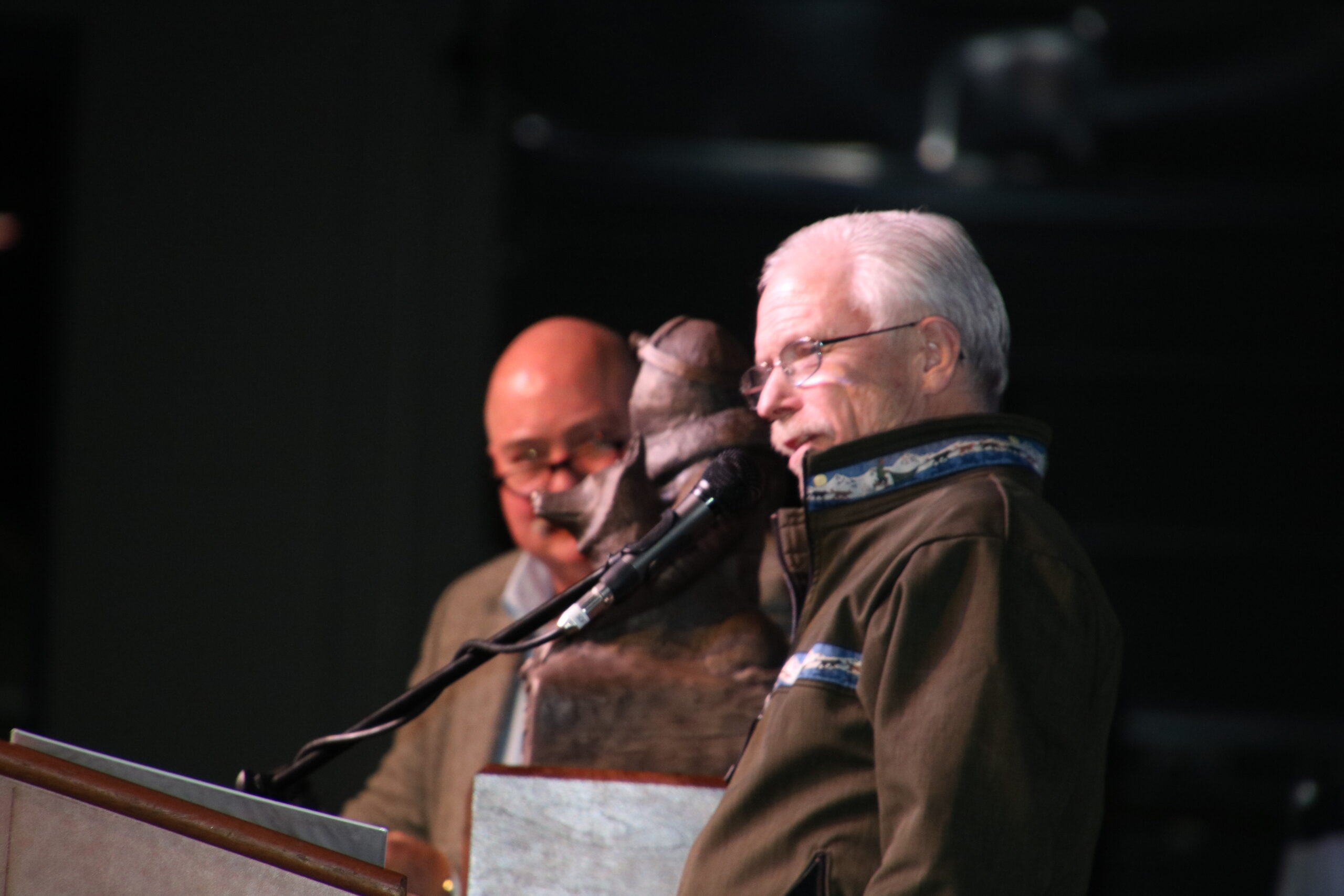After drawing a bib number, each musher approached the podium and shared a message in which they typically thanked their friends, family and sponsors. Some mushers took the opportunity to make some jokes, and such was the case for Jeff King and Cindy Gallea, who both joked about their age. Some mushers discussed the reasons regarding why they choose to race the Iditarod and what motivates them. Charley Bejna talked about the challenges of living with diabetes and hopes to share a message to others with diabetes that you can still live a normal life.