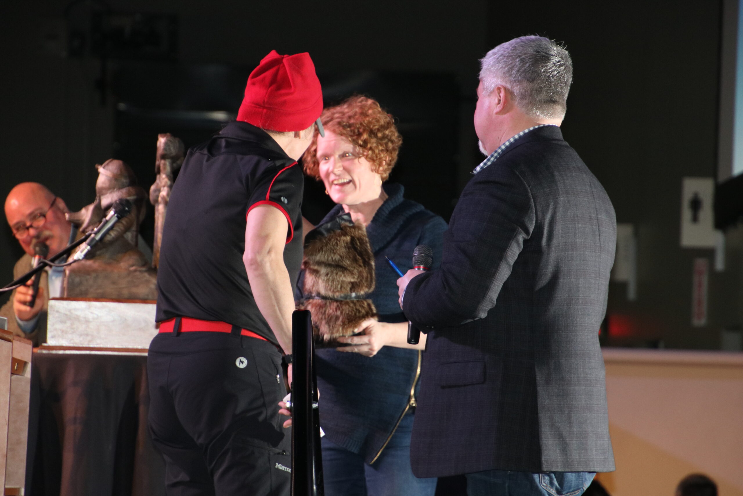 After having a delicious 3-course meal, each of the mushers had the opportunity to draw a bib number and starting position from the mukluk. A mukluk is a soft boot that is traditionally made of caribou or sealskin. One by one, mushers took and stage and drew their number.