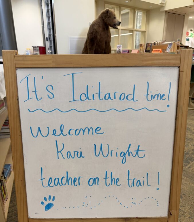 Today the letter “B” takes us all the way to Girdwood, Alaska where we discover that B is for Bears… the Girdwood Grizzlies to be exact! As Teacher on the Trail, part of my responsibilities while in this beautiful state is to present about the Iditarod in local schools. My first day of these presentations I traveled to Girdwood School where I had the pleasure of sharing this amazing race with 3 sets of grade levels from Kindergarten through 8th grade. From the moment you walk through the doors you see the pride they have in their school, which was built only ten years ago. A great number of the students already have a foundation of the Iditarod, which made sharing additional information that much more enjoyable. The kids were respectful, the staff was welcoming, the environment was teaming with Iditarod learning, and the sights were spectacular. Stepping out the front doors to watch the young ones play on the playground, with this incredible mountain in the background, was a sight to behold. To wrap up this first of many days, I decided it would be wise to stick to the letter for today. I couldn’t decide what to eat this evening. Should I have a burger, a burrito, or maybe some barbecue? Nope… Baskin Robbins ice cream it was! A solid choice for any bleary-eyed but blessed Teacher on the Trail.
