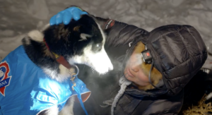 Jody Potts-Joseph    Massaging Her Dogs  Photo Credit- Iditarod Media