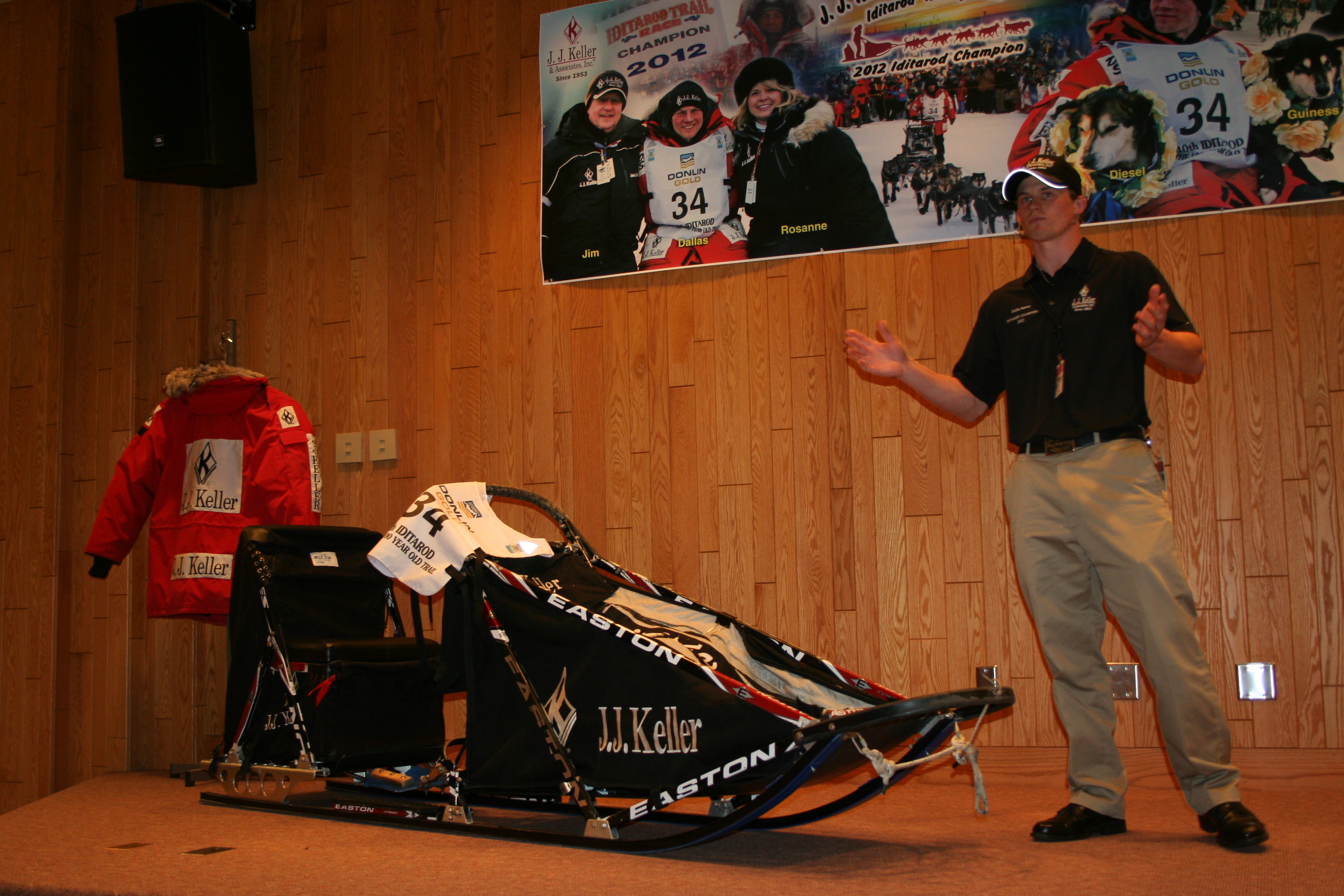 J.J. Keller is a Wisconsin company about 40 miles from where I live and they sponsor Dallas Seavy. Needless to say, they are ecstatic about his 2012 Iditarod win. The fact that he is the youngest person to ever win the Iditarod is a bonus. To celebrate his win, they brought him to their corporate headquarters in Neenah, Wisconsin in May and invited the public to listen to his story.
