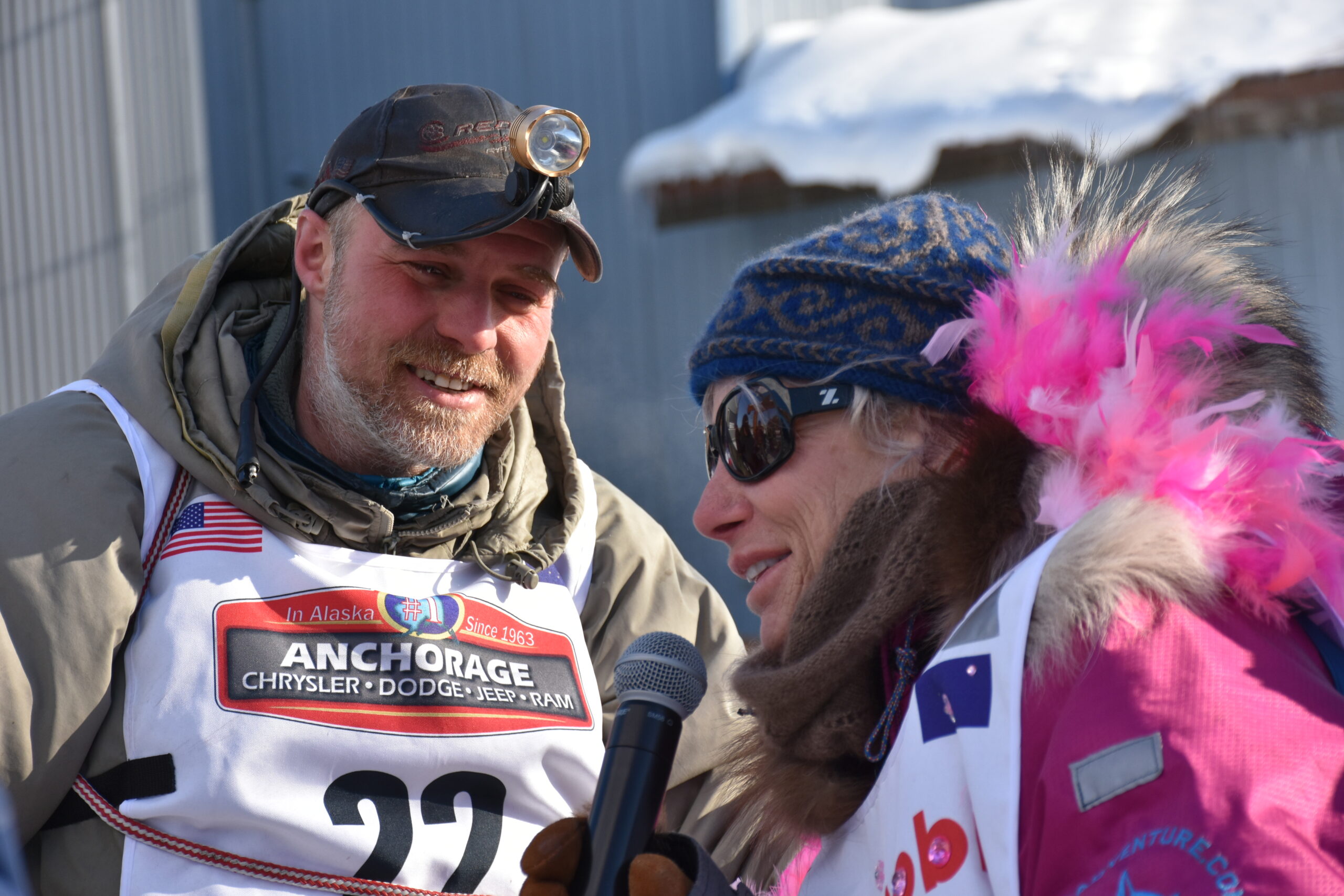 The teams are dismissed out of the chute and leave to bed down the dogs; the mushers get to visit with family and friends, and, I’m guessing, sleep! This morning we are expecting three more siren warnings and the last of our brave mushers and their incredible dogs to finish the Iditarod under the burled arch.