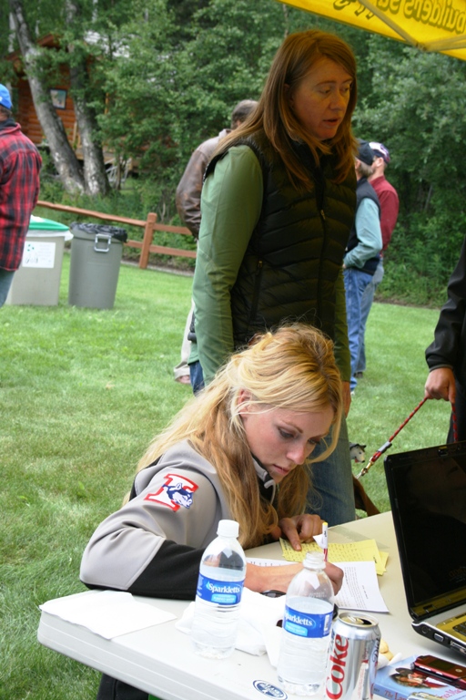 At the picnic, mushers paid their race entry fees, turned in paperwork, and race fans had a chance to get autographs and photos of the mushers. Bob Story of New Zealand is a rookie training with veteran musher Vern Halter. A rookie is a person who hasn’t finished the Iditarod. Bob will have several long distance races under his belt by the time Iditarod 2011 begins in March.