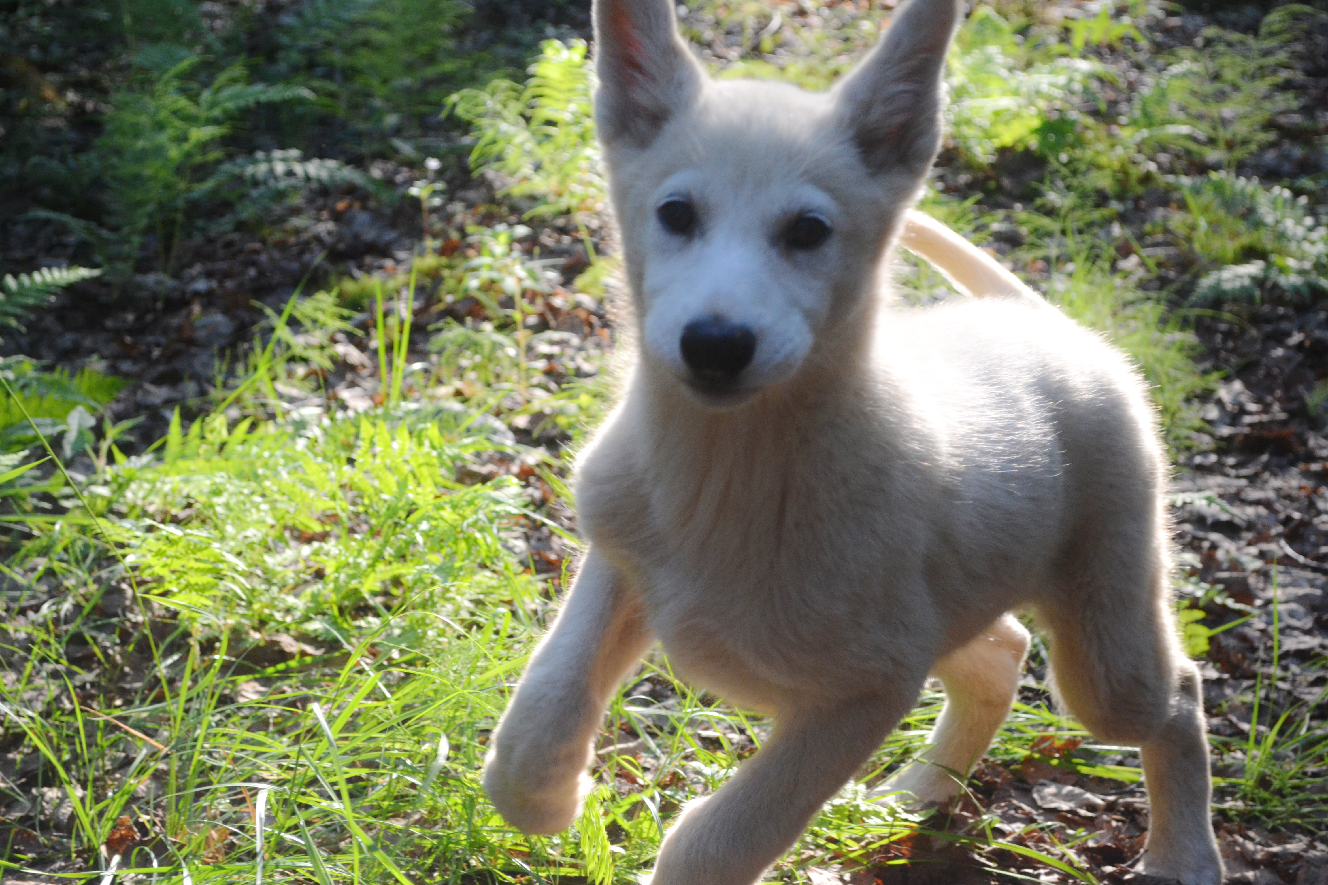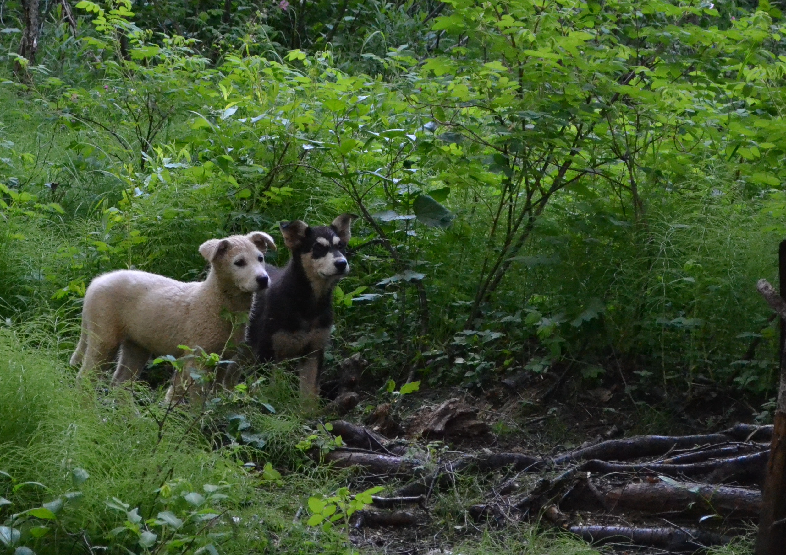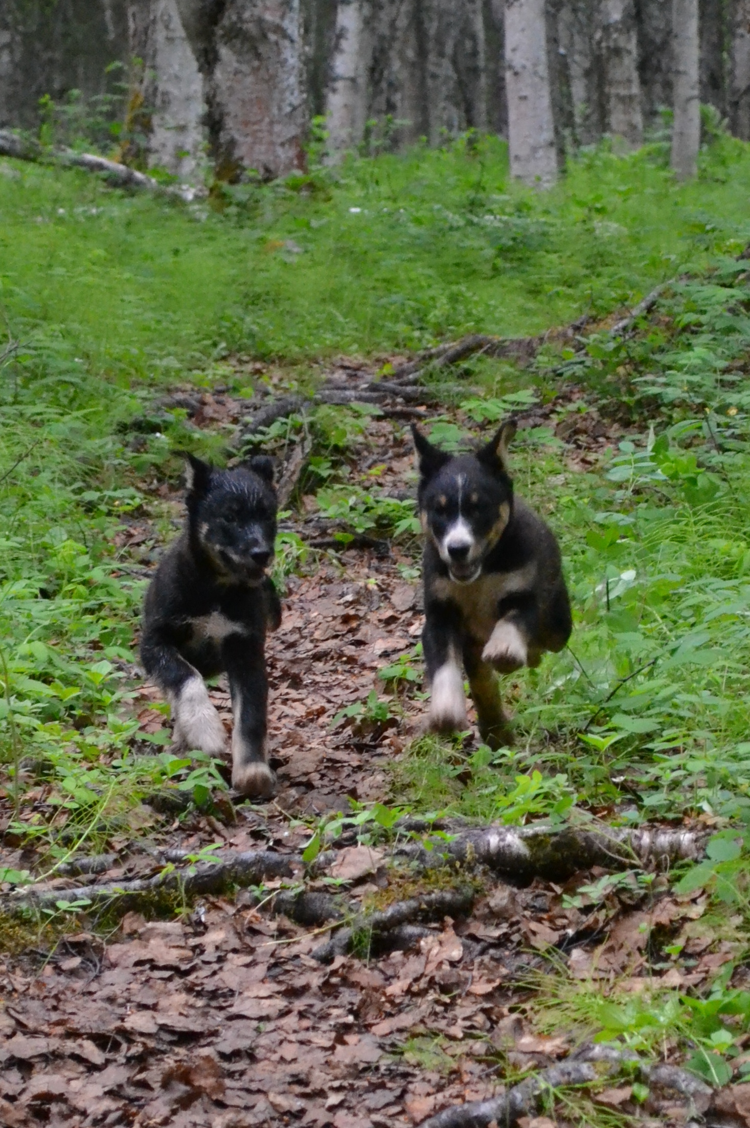 Vern, Iditarod finisher and owner of the Dream a Dream Dog Farm, explained that the walks are a way to help the puppies gain confidence. They free run with the handlers and usually an older dog. They will run up ahead and then turn around and come back, explore the woods, and generally get lots of good exercise while they get used to their bodies and their abilities. When the