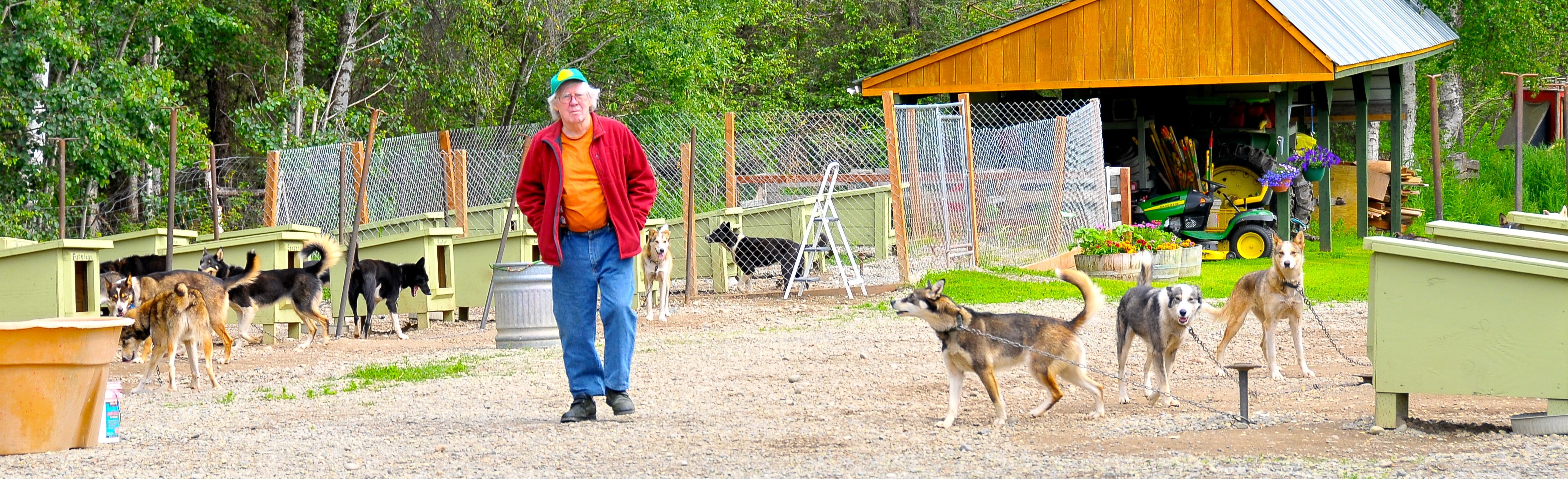 Working with dogs years ago, mushers didn’t have the large kennels that they have today. Joe had just enough dogs to run a team, 12-13. He paid very close attention to these dogs. He had their discipline under the utmost control. As a trapper, Joe would have to leave his team to check the line, so when he said “stay,” those dogs had to stay. Back then, mushers did not have a run/rest schedule when running their dogs. The mushers would run their dogs until the dogs told them they were tired or it was time to eat. Their dogs were always enthusiastic about running. Joe changed later to having a run/rest schedule. This allowed his dogs to always stay fresh. You don’t want to run your dogs until they are tired, you want to stop running them before they get tired.