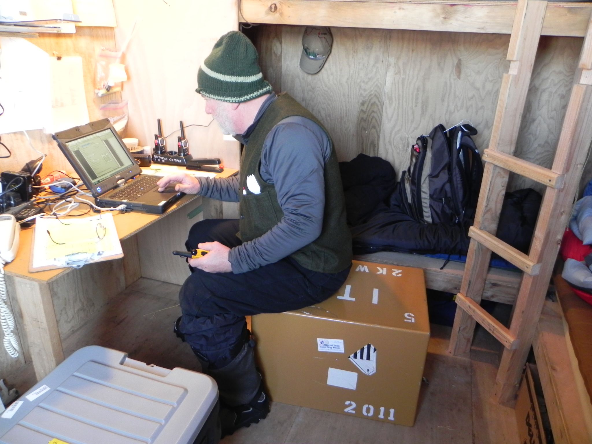 MASH. The Comms tent is just that, a tent with bunks for off shift time. There were teams of dogs lined out and resting and mushers busy doing their chores.