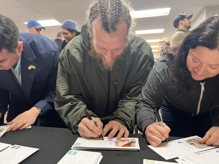Your filled cachet will be taken to the Musher Meeting in Anchorage that is held on the Thursday before the race. Your musher will sign the envelope and it will be collected back by our volunteers who will have it packaged for safe travels down the trail.