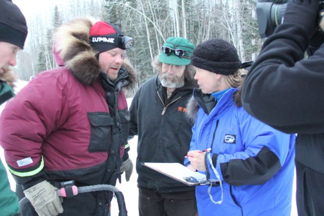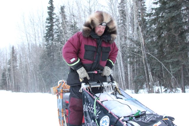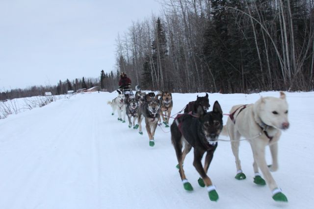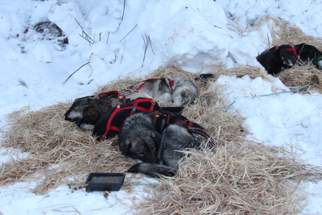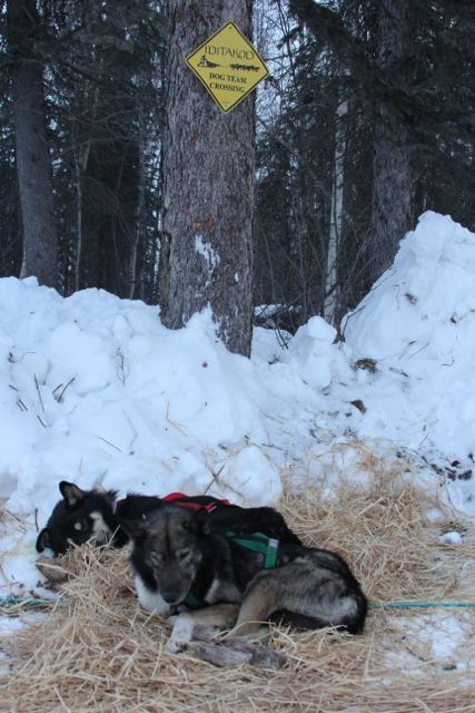 Aaron’s team is clipping right along. The dogs were barking while waiting in the checkpoint. A few of these guys I ran in 2011 in my team. Govenor was running right next to Moss. Todd, Remmy and Ruger I also could remember. Dang, this is one of those moments when I am itching to hop on the runners. Especially seeing Aaron visibly in pain with his twisted knee. He is pretty much one-legged right now. He used his chance to walk up and down the gangline in the checkpoint, while somebody could hold his sled, a task more difficult on the trail, if you are alone. Aaron shows lots of grit to keep on going. But looking at his team, I can not blame him one bit. They look beautiful! Now there is a little bit of a break in the action, but teams should file into Takotna soon, and Joe Runyan is there to keep an eye on the happenings. I hope you arm chair mushers enjoy the show!IMG_3896 IMG_3899 IMG_3901 IMG_3902 IMG_3907 IMG_3909 IMG_3915 IMG_3917 IMG_3921 IMG_3925