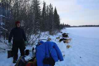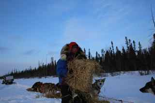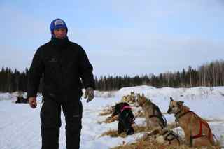Michell Philips, Thomas Waerner, Martin Buser about 20 Miles out of Nenana.Michelle in the lead. About 13 Miles before that are 4 teams. Kristi, Paul, Lindwood and Scott Janssen.