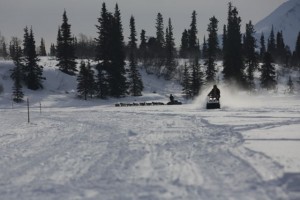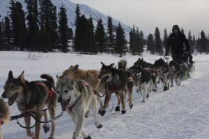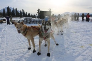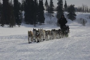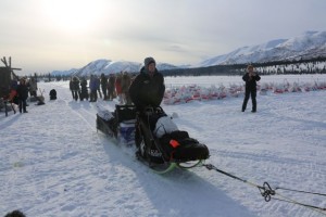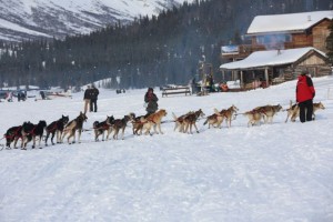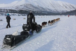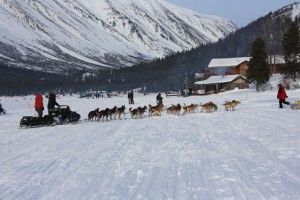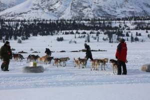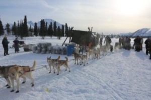 The dogs were very animated when he came into the checkpoint. Dallas is always very quickly getting to his routine of bedding down the dogs. That was easier said then done, as they seemed to have a different idea, wanting to eat up even more trail. It takes A LOT of training to have a team look this nice, after two long 8 hour runs with a short 4 hr break this early in the race.