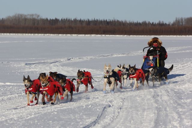 The mushers are coming in quick succession. I am lucky that Tim is running back and forth to the river taking pictures while I do the writing and uploading. Then hang on a second….. that was supposed to be the other way around, that I do the fun stuff…something went wrong along the way.