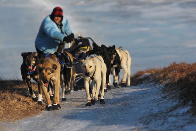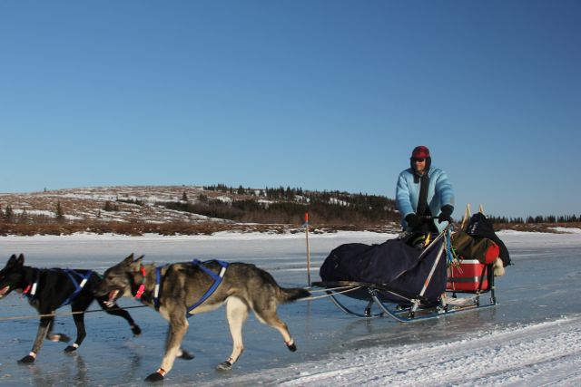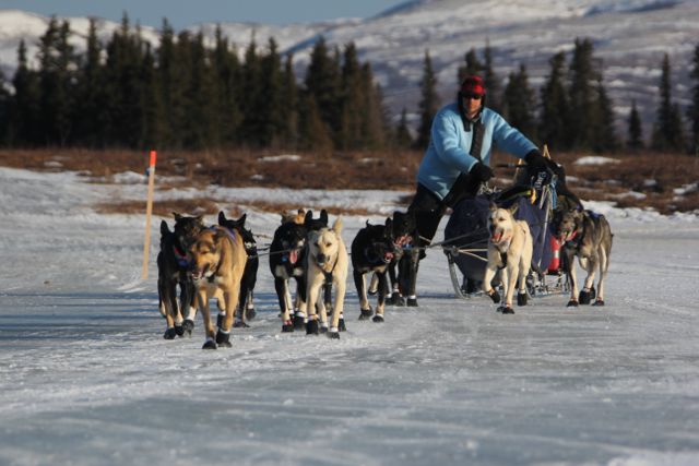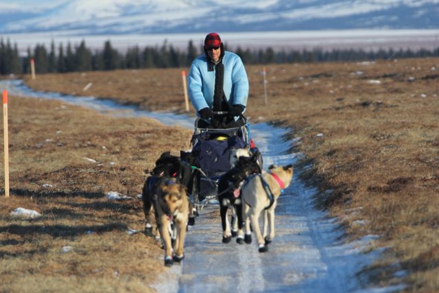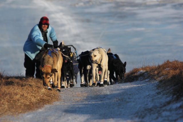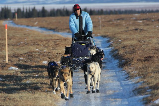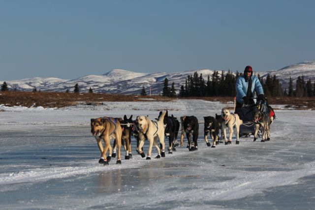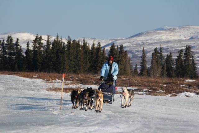 Martin greeted me with Sebastian you are making my day. Although us snowmachiners are not always welcome on the trail, specially in deep snow, in conditions like this, to have the dogs see a dot on the ice does help them focus. Martin has been a real good sport all race long with putting up with the camera in his face. Not all mushers are like that, some have been quite grumpy. Its a fine line of getting some exposure for the race and being in the way. So this is why you might see a bit more of Martin Buser, because he is very accommodating on the trail. His official time in is 17.31. So the two front teams are separated by 52 minutes. And that after all those miles and all those different strategies…..