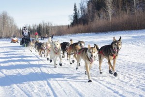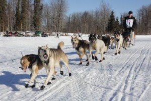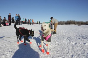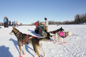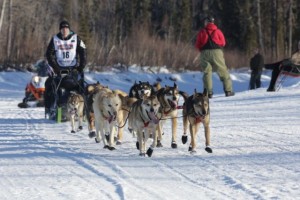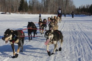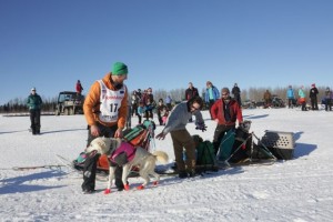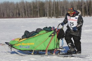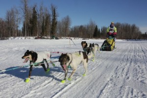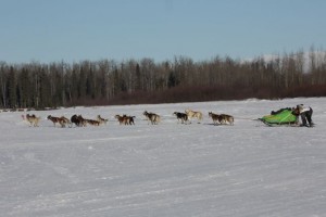 Well, there is always little things going wrong. I was wondering what was going on with all the barking in the distance. That sure sounded longer, than it would take to snack, or just load a dog or two. It was Kelly Maixner who had lost his brake bar on one of the downwhills. ” Don’t take picture of this mess “…. Well Kelly , that is what I am here for. He got things nicely under control, put a new brake bar on, loaded a few dogs in the caboose and headed down the trail again.
