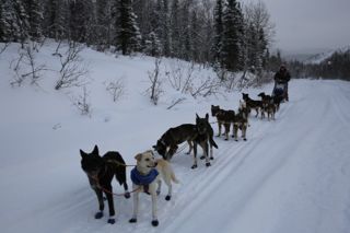 Well they are small, but they give you an idea of the historic mining country as well as the snowless trail. One nasty overflow got a nicely soaked. I am sure the dogs did not mind to get cooled off.