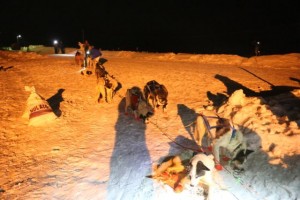 Jeff King asked for an 8 a.m wakeup call, he is taking his 8 hour layover her. Aliy and Dallas are both sleeping. There are several teams now who have done a long run into here as Robert Sorlie and Jeff King all came here straight from Ruby. Robert also still has to take his 8 hour layover.