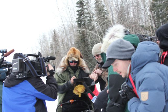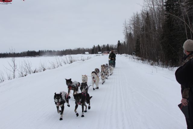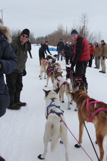 It’s a rock star’s reception into McGrath. Earlier than ever before, Two Rivers ( and my neighbor ) musher Sonny Lindner arrived into McGrath with a full string of 16 dogs. They looked good, so did Sonny, who is always a bit more on the quite side.