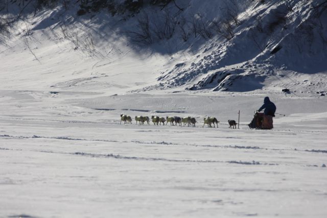 The chasing pack is getting to Koyukuk. And a big pack it is. The mushers are lined up along the trail one after another, with no real breaks. It is nice to see Wade Marrs being so well into the mix. He was one of our picks for the pre-race interviews too and seems to be living up to expectations.