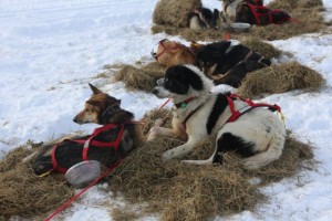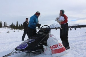 Made it to Nikolai. Right when I was about to leave Rainy, I overheard a fun exchange of words between Jessie Royer and Michelle Phillips. Michelle had mentioned that she had to load one of her dogs en route to Rainy Pass and that her zipper on the sled bag broke. ” I am hoping who ever is coming in behind me, picked up some of my stuff”.
