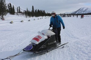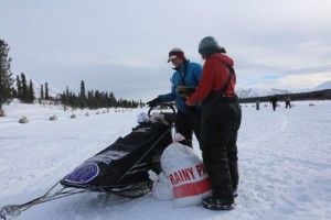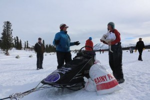 The one behind her was Jessie Royer. After skillfully parking her team. She looked over at Michelle: ” Did you have a yard sale ? ” First thing Jessie pulled out of her sled bag was a nice fur hat. ” I thought at first that was a dead animal , then I saw more stuff strewn around. ” So piece by piece Michelle got her belongings back, which made her real happy. ” I was bummed out on my ride over here, as some of the stuff has quite the sentimental value.”