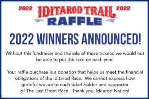 The 2022 Iditarod Winter Raffle drawing was conducted at 4 p.m. Sunday, April 3, 2022 at the Great Alaska Sportsman’s Show and broadcast on