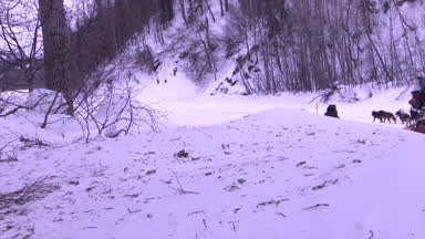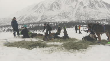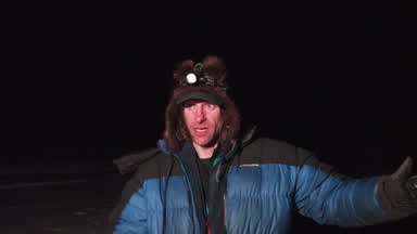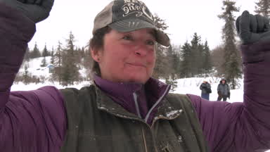 Jessie Holmes recants the encounter his team had with a moose on the trail between Finger Lake and Rainy Pass.