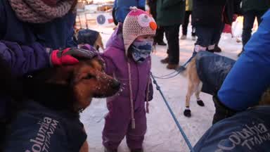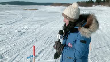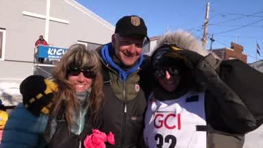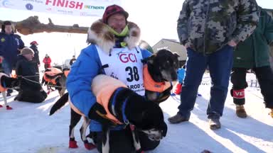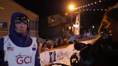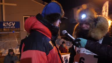 Liz Failor shows how the Iditarod Trail is marked for mushers.