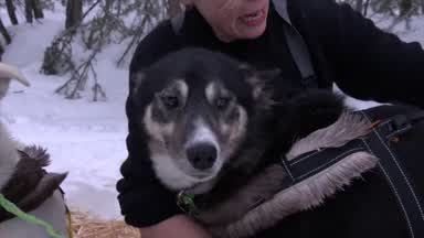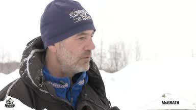 Rookie musher Gerhardt Thiart interviewed in McGrath by Liz Failor