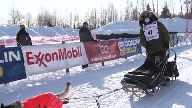 Martin Buser, 4-time Iditarod champion, returns to Deshka in his 37th consecutive Iditarod finish and talks about his health scare on the trail, which kept him delayed for about 4 hours in Ophir.