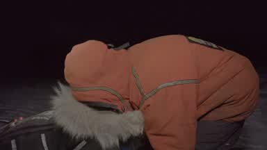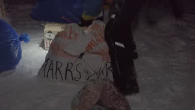 Brent Sass grabbed supplies from his drop bags & headed back out on the trail. He was just a few miles behind Dallas Seavey out of Rainy Pass.