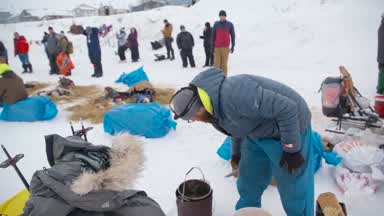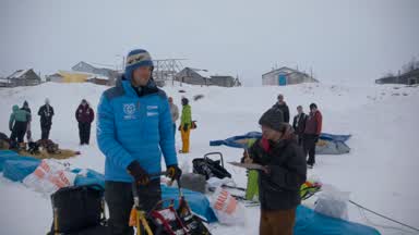 Brent Sass does not waste any time in the Unalakleet checkpoint. He decides to chase the lead, Thomas Waerner.