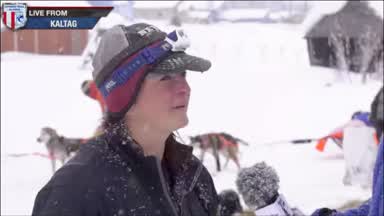 Greg Heister interviews Jessie in Kaltag as she starts her 8 hour rest.