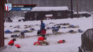 The defending champion pulled out of Takotna just before 8pm with 13 dogs on the line.
