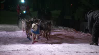 Last year’s champion, Mitch Seavey, pulled into Nome Wednesday with 9 dogs on his team.