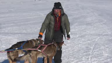 Jessie Holmes is the first musher to arrive at the White Mountain checkpoint. He arrived with 11 dogs on the line.