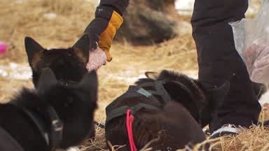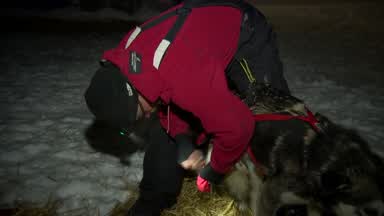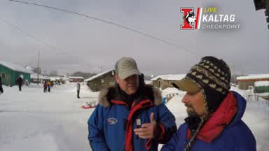 Nicolas Petit made it to Unalakleet at 1:40 pm with 13 dogs with one of them in the basket. He’s planning to rest for a few hours then take off.