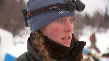 Jessie Holmes arrived at Rainy Pass checkpoint Monday just after noon.