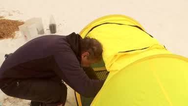 The veteran sets up his “napping house” at Finger Lake.