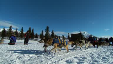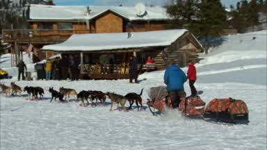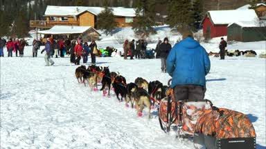 Just after noon Hugh Neff arrived in Rainy Pass with 15 dogs.