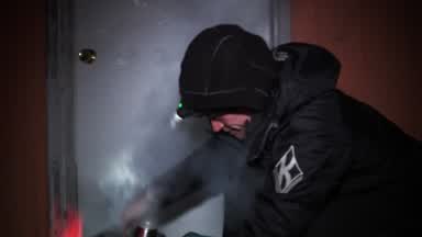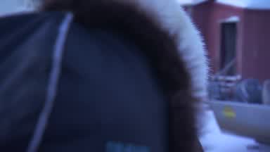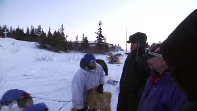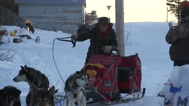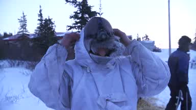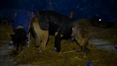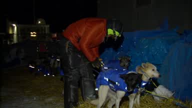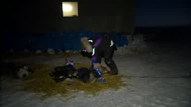 With the use of a night vision scope this is Mitch Seavey moving on the sea ice towards Koyuk. You will see the lights of Koyuk at the end of the clip.