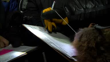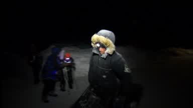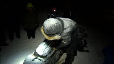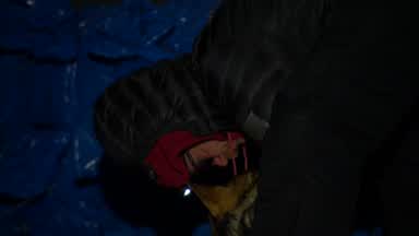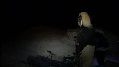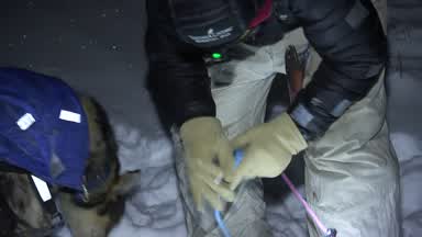Nic Petit gets supplies together fast to head back out on the trail.