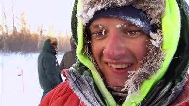 Bruce notes the overnight cold weather and Dallas’ unique sled design for resting dogs.