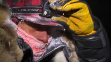 Bruce notes the overnight cold weather and Dallas’ unique sled design for resting dogs.