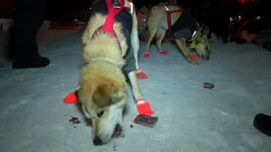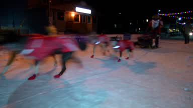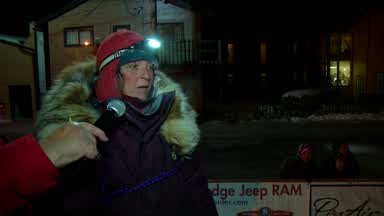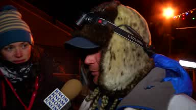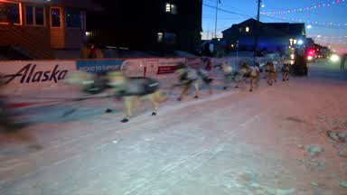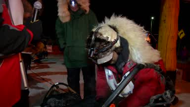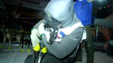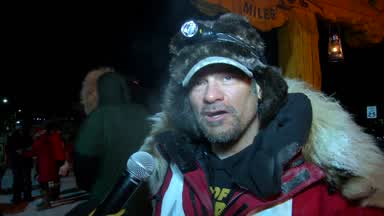 A relieved and thankful Brent Sass passed under the Burled Arch with 9 dogs on his line Tuesday evening.