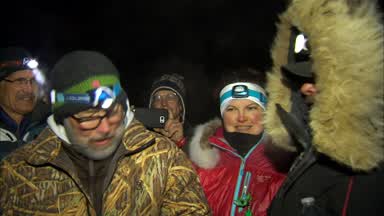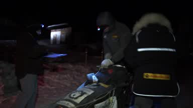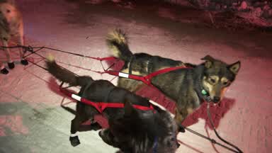 He arrived tonight at 10:22 p.m with 15 dogs and left 2 minutes later taking over the lead of the race.