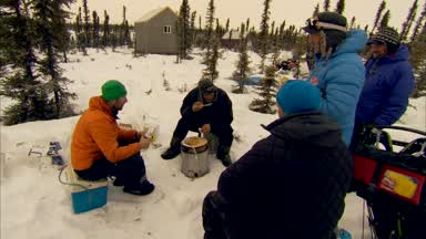 Iditarod mushers are not always in a head to head competition. This early morning they were head to head in conversation about dumplings and dentistry.