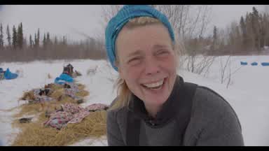 Michelle Phillips declares her 24-hour rest in Nulato, after arriving minutes behind Jessie Holmes.