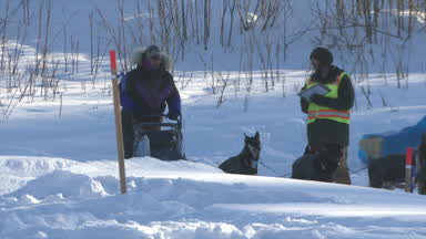 Jessica Klejka talks with an insider crew about how well her lead dogs took her down the Yukon up to this point.