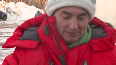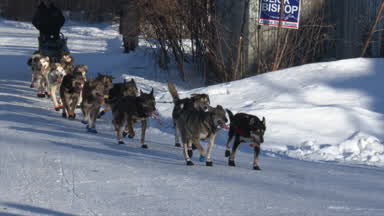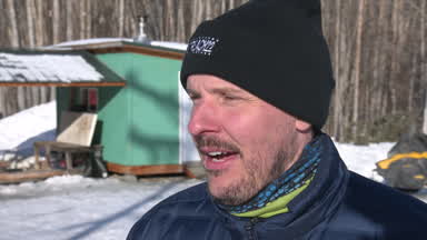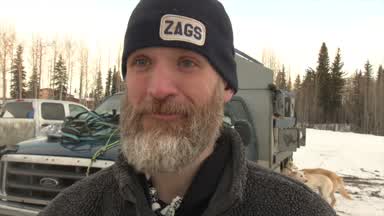 Jason Mackey is the first musher in and out of Nenana.