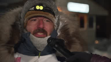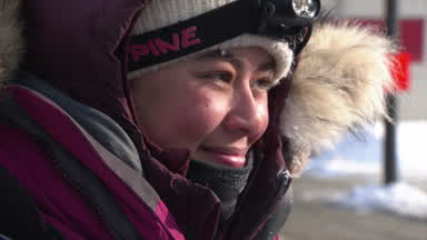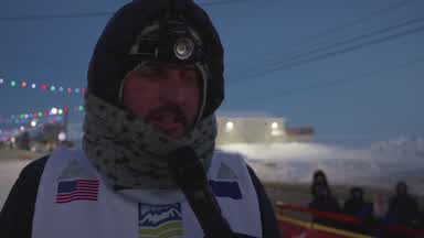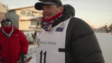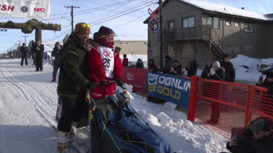 Rookie Benjamin Good arrives in Nome as the 25th Mushing team to cross under the burled arch. Ben reunites with his family after a long journey.